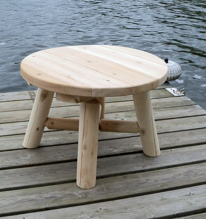 This handy little 24" round log end table is both versatile and functional. Placed next to any of the Muskoka chairs, it's ideal for putting down your drink and resting your book. Small but perfectly formed, it really is a charming piece. Easily moved from one place to another, it's a must have addition to the deck or backyard.