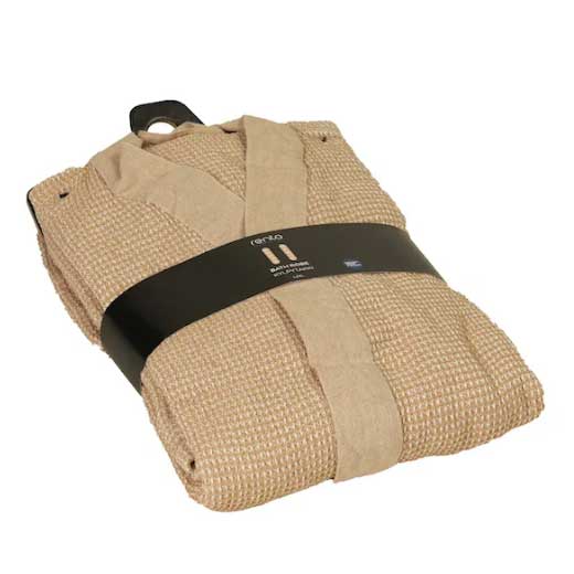 Comfy bathrobe with chambray borders and belt. Kenno sauna textiles are made of recycled cotton, giving the fabric a natural softness and vibrant texture.